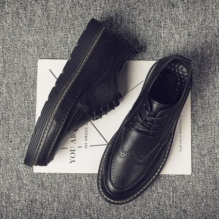 Black Men's Small Leather Shoes Mens Trend Casual Leather Breathable Shoes